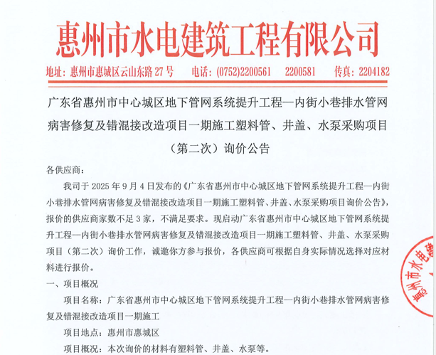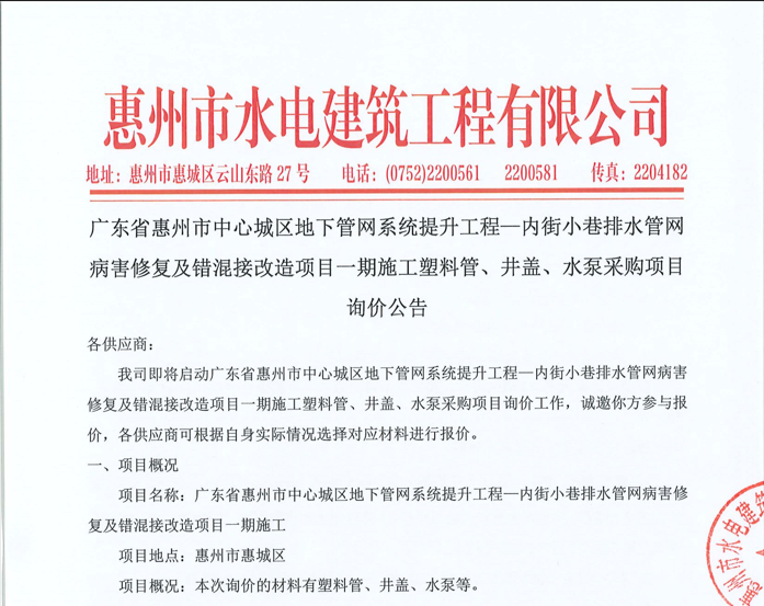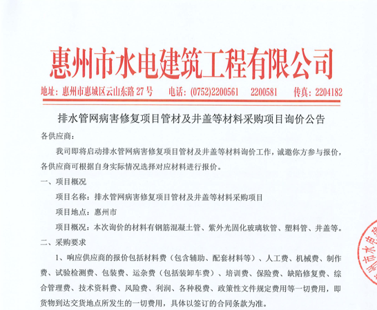 惠州新材料產(chǎn)業(yè)園配套區(qū)基礎設施建設(二期)項目施工井蓋采購項目詢價公告……