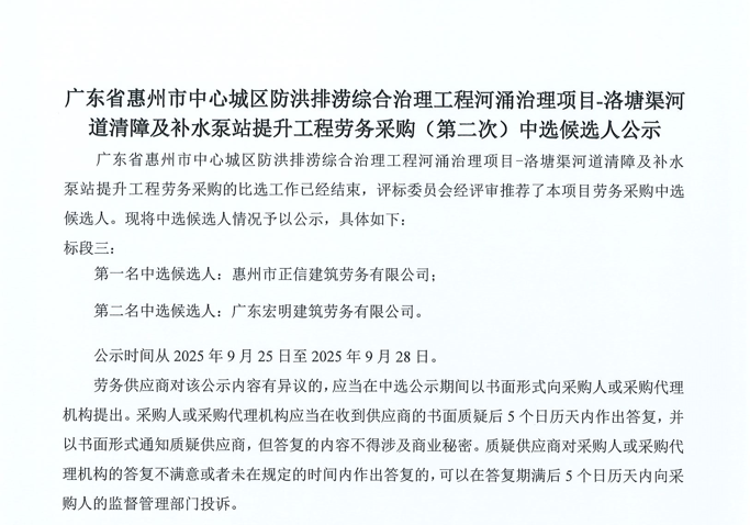 惠州市水電建筑工程有限公司勞務供應商庫擴庫評審結(jié)果公示……